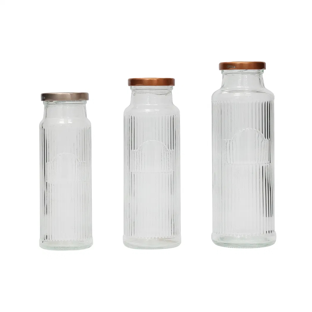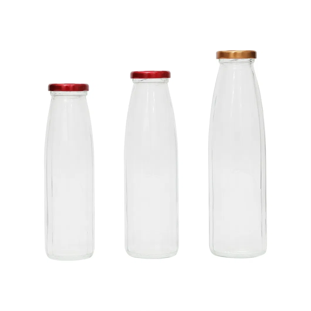 Custom Shape Wholesale Round Clear 12oz 16oz Juice Beverage Water Glass Bottle with Tin Cover